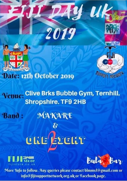Tickets: https://www.eventbrite.co.uk/e/fiji-day-2019-tickets-68651659963
